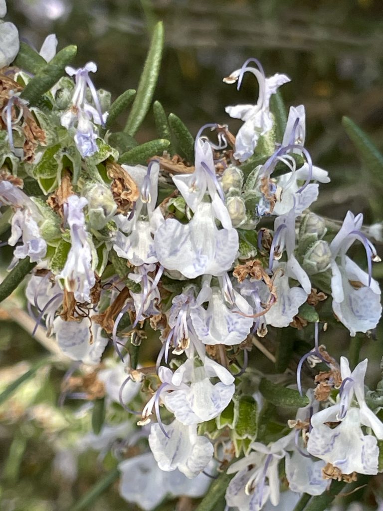 Ein ganz besonderer Zauber geht von seinen Blüten aus. Bereits im zeitigen Frühjahr öffnet mein alter Strauch seine zarten, blauen bis violetten Blüten. Sie duften fein und ziehen Scharen von Bienen, Hummeln und anderen Insekten an. Rosmarin ist ein wertvoller Bienenmagnet und bietet Nahrung, wenn im Garten noch nicht viel blüht.