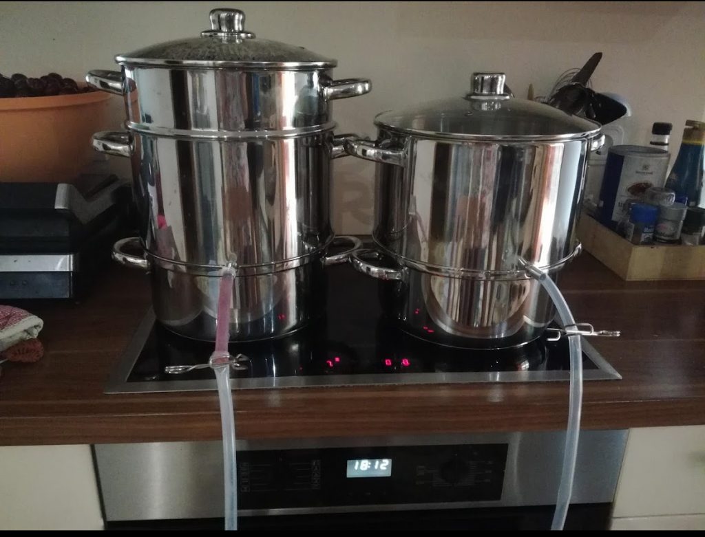 Diese Technik kam um die Wende vom 19. zum 20. Jahrhundert auf und wurde vor allem in Mitteleuropa rasch verbreitet. In der Nachkriegszeit war der Dampfentsafter aus vielen Küchen nicht wegzudenken. Im Burgenland erinnere ich mich noch gut daran, wie in der Küche meiner Oma der Metallturm auf dem Herd stand und der Duft von heißen Trauben oder Ribiseln das ganze Haus erfüllte. In den Flaschenregalen stapelte sich dann der Vorrat für den Winter: Johannisbeersaft für den Tee, Traubensaft zum Verdünnen oder Quittennektar als kleine Medizin. Heute erleben diese Geräte wieder ein Revival, weil sie nachhaltig und unkompliziert sind und sich perfekt für größere Obsternte eignen.