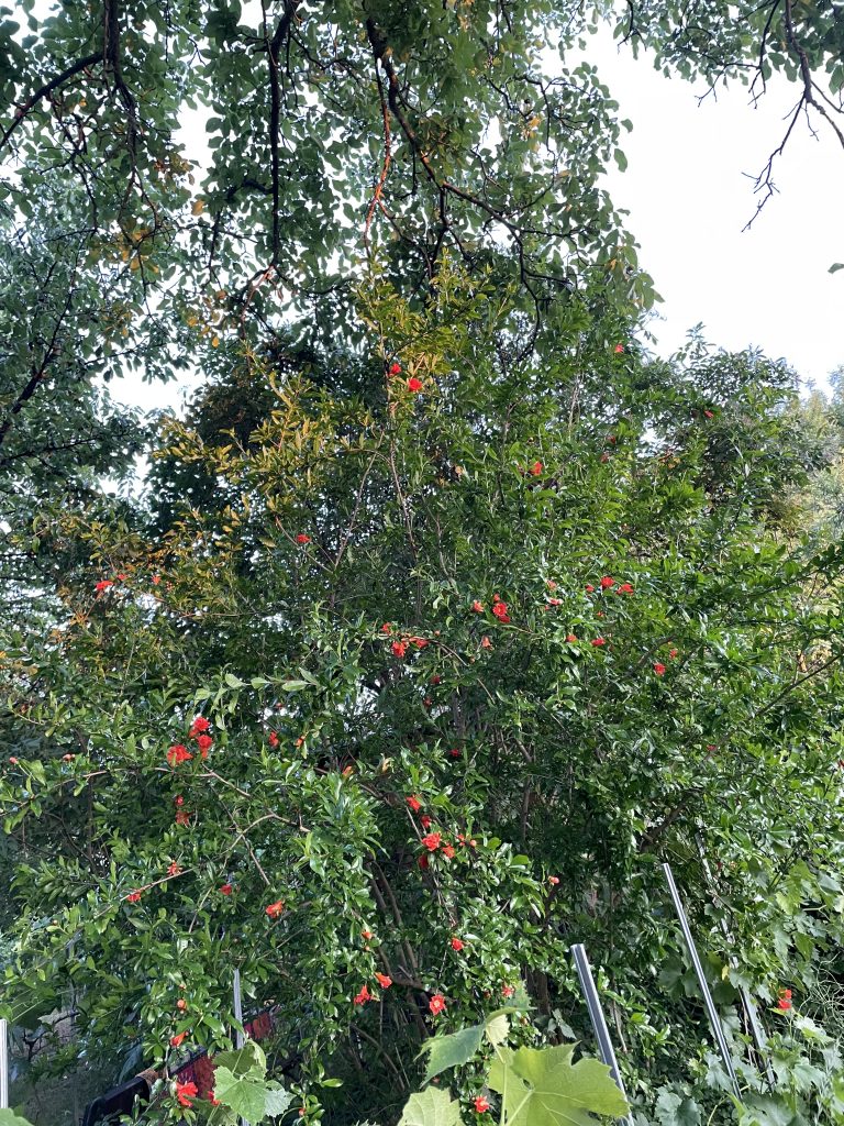 Ich glaube, der Granatapfel ist eine dieser Pflanzen, die man nicht nur wegen ihrer Frucht, sondern wegen ihres Wesens liebt. Weil sie schön ist, weil sie alt ist, weil sie uns etwas erzählt – von Hitze und Sonne, von Wurzeln in trockener Erde, von Geduld und innerem Reichtum. Und weil sie genau dann blüht, wenn vieles andere schon aufgegeben hat.