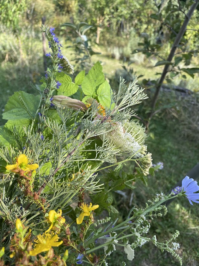 Heute bin ich als erstes in den Garten gegangen um meinen Kräuterbuschen zu schneiden, Ysop, Lavendel, Rosmarin, Schafgarbe und noch einige mehr werden nun als Strauß getrocknet. Im Winter wird davon etwas genommen um nicht nur in den Rauhnächtern damit zu räuchern.