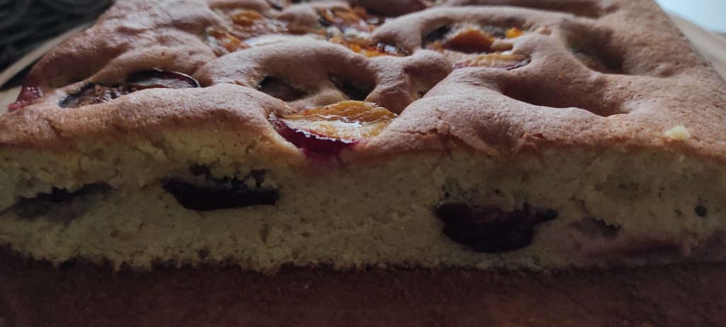 Eier mit Zucker, Rum schaumig rühren , Milch und Öl unterrühren. Mehl mit Backpulver mischen und ebenfalls unterheben. In eine mit Backpapier oder eingefettete Form geben oder auf ein Backblech. Mit Obst belegen. Bei 180 Grad ca 30 bis 40 Minuten backen, je nach Form und Herd