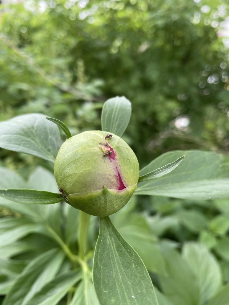 Ameisen helfen Pfingstrosenknospen beim Öffnen, indem sie den zuckerhaltigen Klebstoff von den Knospen ablösen, was den Blüten ermöglicht, sich zu entfalten. Dies geschieht, weil die Ameisen von dem süßen Klebstoff angezogen werden und ihn abfressen, während sie dabei helfen, die Blüten zu öffnen