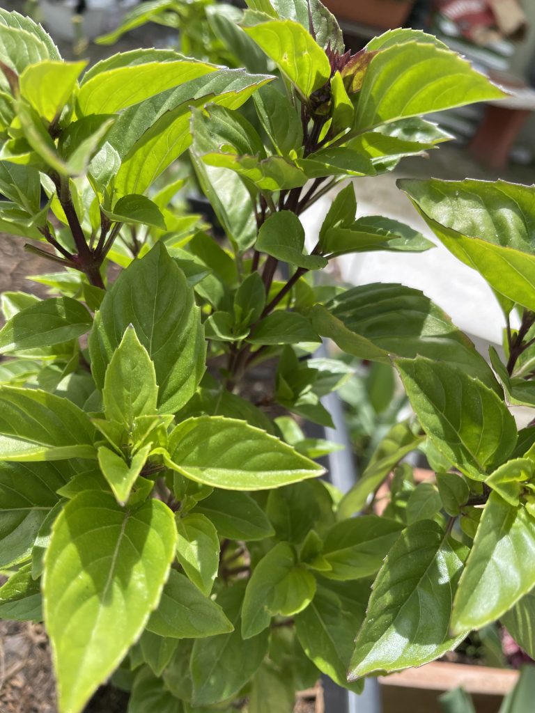 Thai-Basilikum und Zimt-Basilikum steuern mit ihren anisartigen und würzig-süßen Aromen einen exotischen Touch bei. Sie passen zu asiatischen Currys, Sommerrollen oder auch als ungewöhnlicher Twist in Bowls und Dressings. Die schlanken Blätter und dunklen Stiele des Thai-Basilikums sind außerdem dekorativ.
