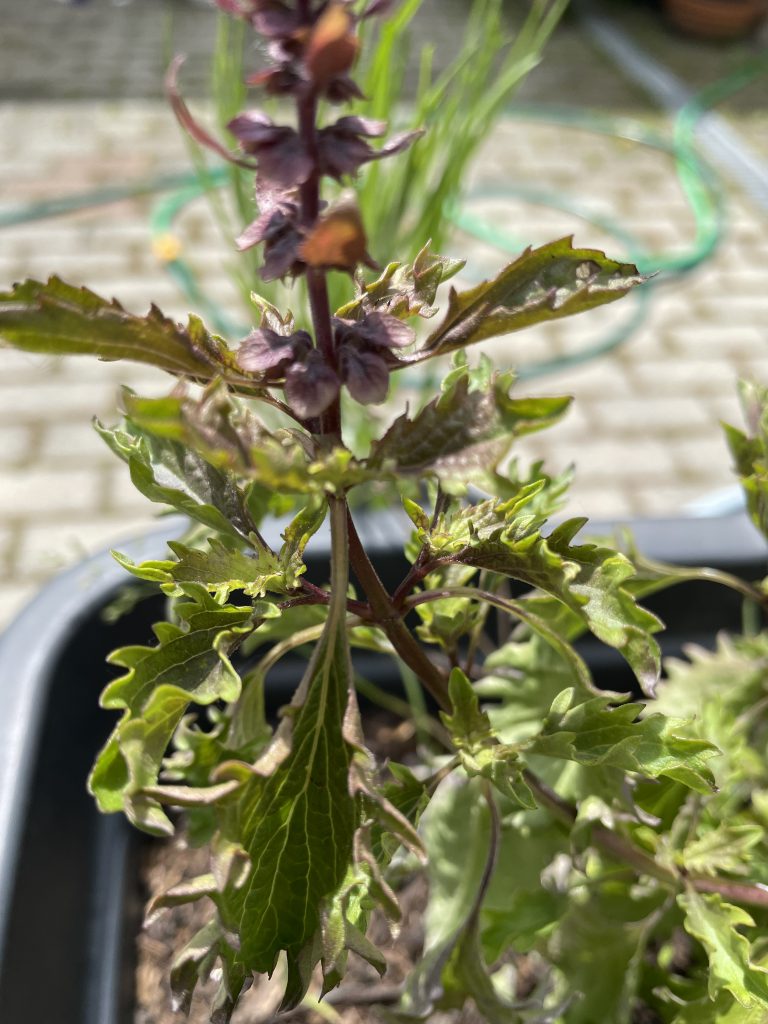 Ein echter Hingucker im Beet ist rotes Basilikum, etwa die Sorten Dark Opal oder Purple Ruffles. Ihre tiefvioletten Blätter sind nicht nur schön, sondern enthalten viele Anthocyane – sekundäre Pflanzenstoffe mit antioxidativer Wirkung. Geschmacklich ist rotes Basilikum oft etwas herber oder pfeffriger. Es eignet sich besonders für Essige, Butter oder als Farbkontrast auf Tellern.
