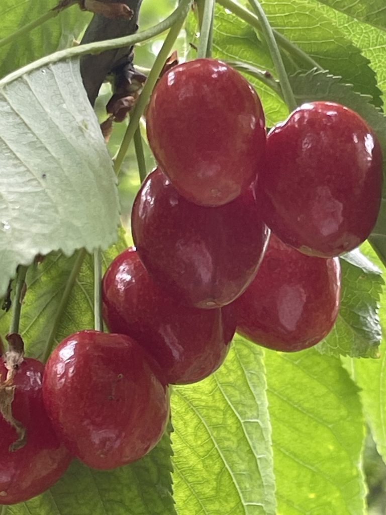 Bei uns im Garten stehen einige Kirschbäume – alte und neue Sorten. Die alten sind schon Jahrzehnte da, groß, knorrig, mit rauer Rinde und einem Schatten, wie ihn nur Zeit schafft. Welche Sorten das genau sind, wissen wir gar nicht mehr. Sie tragen dunkle, fast schwarze Früchte, süß und aromatisch, jedes Jahr ein bisschen anders.